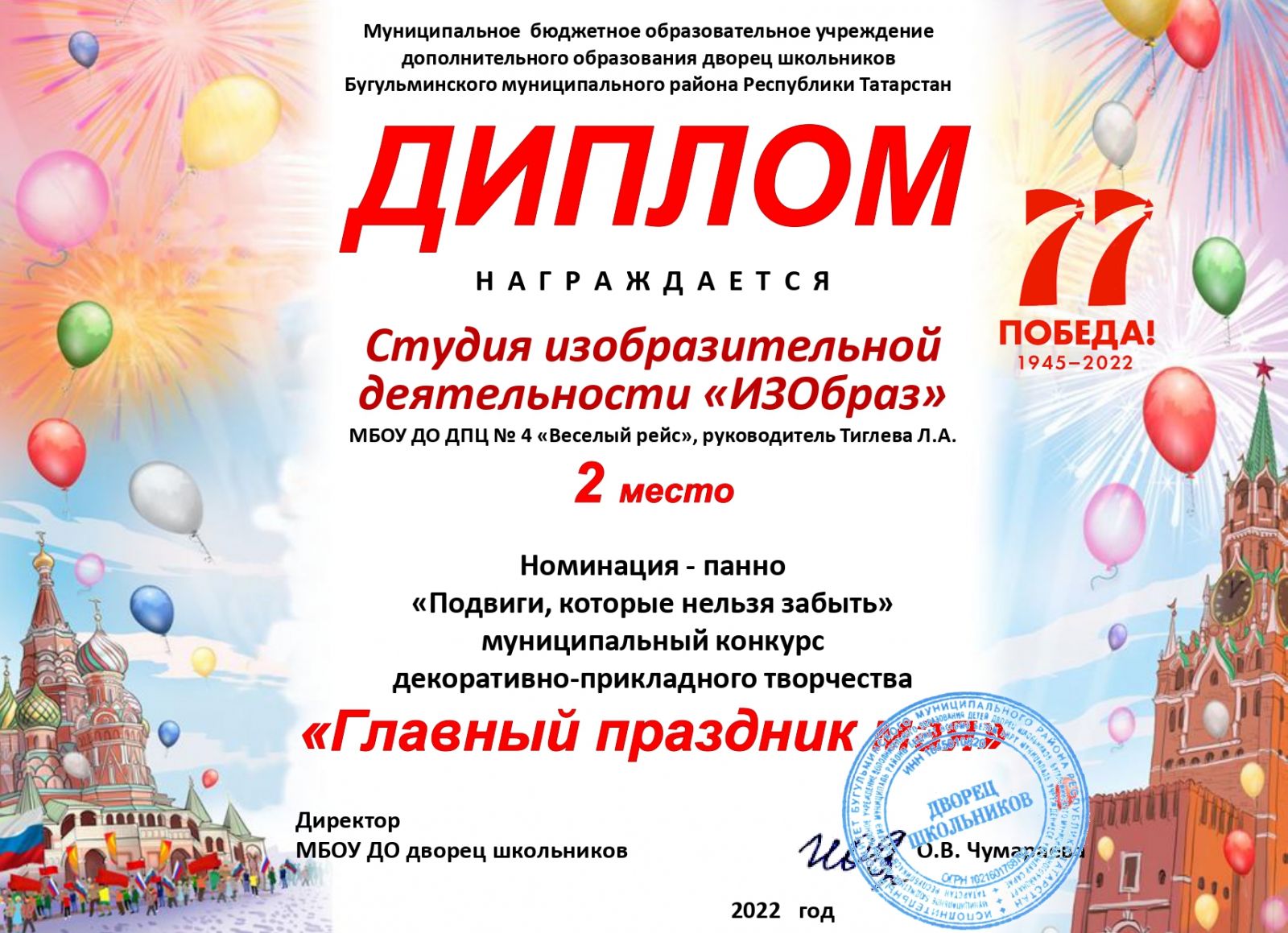 43.Муниципальный конкурс "Главный праздник мая" 2 место Диплом