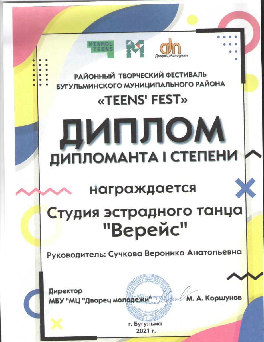 28.Районный творческий фестиваль "TEENS FEST" дипломант 1 степени Диплом