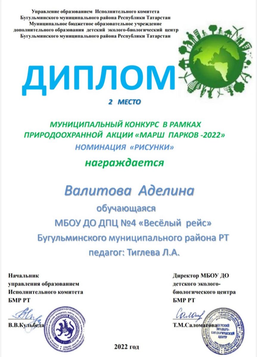 47.Муниципальный конкурс в рамках природоохранной акции "Марш парков" 2 место Диплом