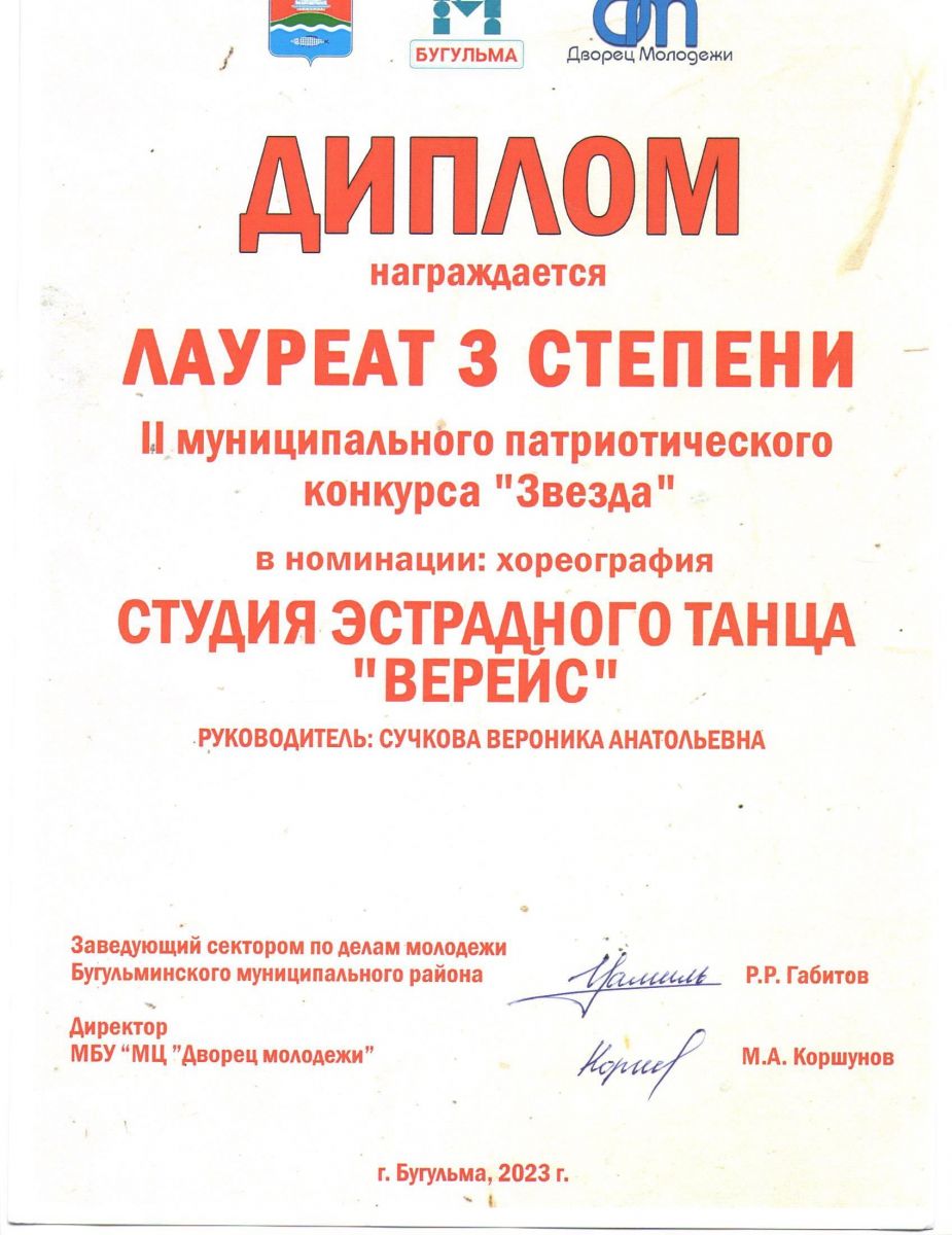 3. Муниципальный патриотический конкурс "Звезда" Лауреат 3 степени Верейс Муниципальный патриотический конкурс Звезда.jpg