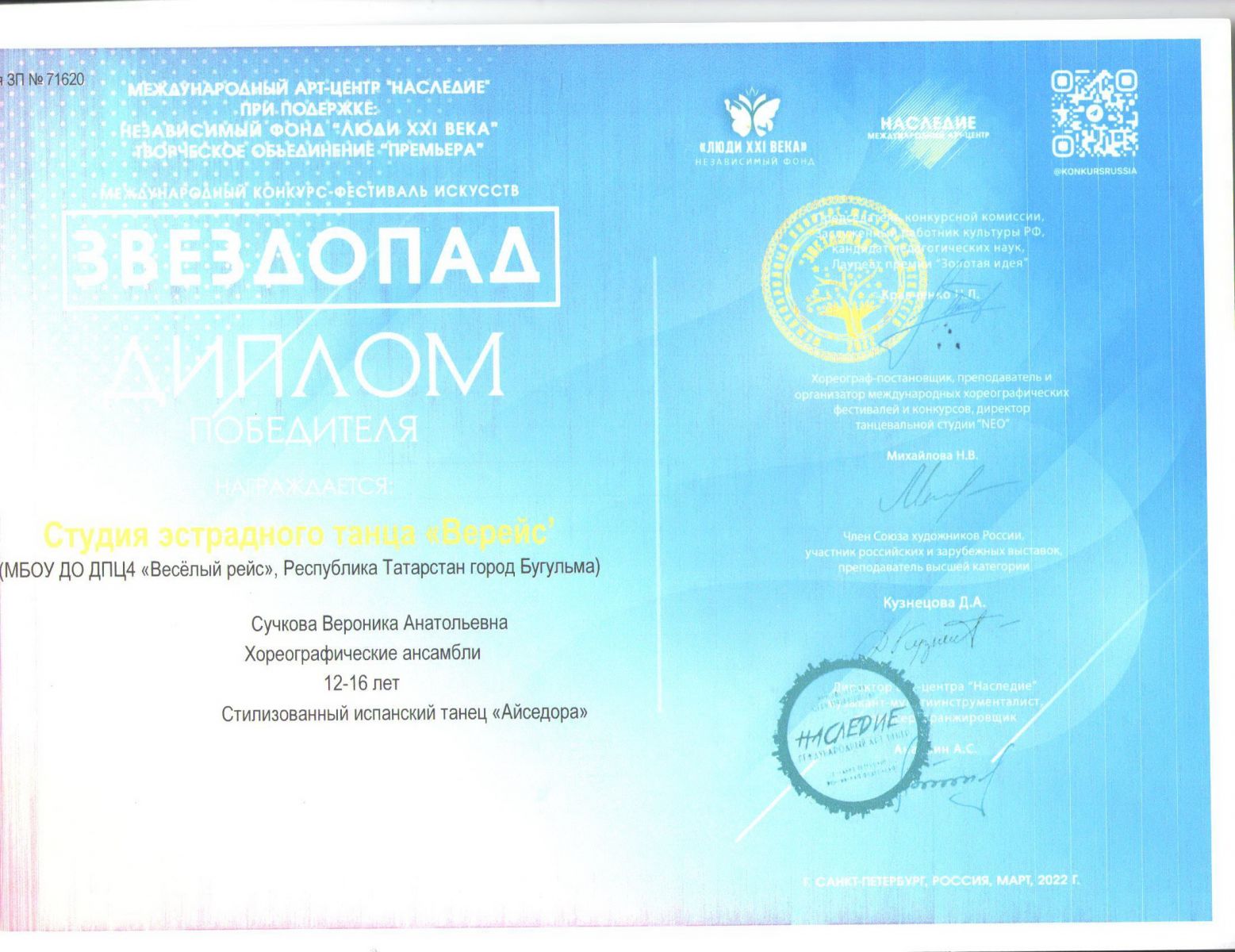 4. Международный конкурс "Ярче звёзд" Лауреат 2 степени Верейс Международный конкурс Ярче звезд.jpg