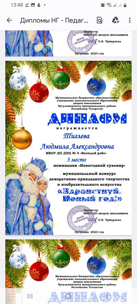 11. Муниципальный конкурс декоративно-прикладного творчества и изобразительного искусства "Здравствуй, Новый год!", Диплом 3 место, Тиглева Л.А.jpg