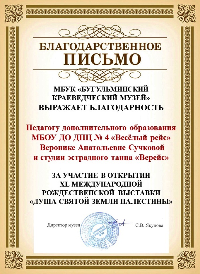 9. Международная рождественская выставка "Душа святой земли палестины", Благодарственное письмо. Благодарность Сучкова.jpg
