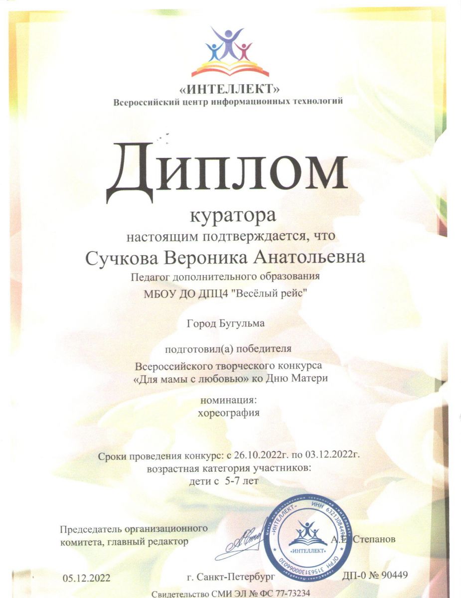 8. Всероссийский творческий конкурс "Интеллект", Диплом куратора "Для мамы с любовью",Сучкова В.А. Всероссийский кокнурс Интеллект Сучкова.jpg