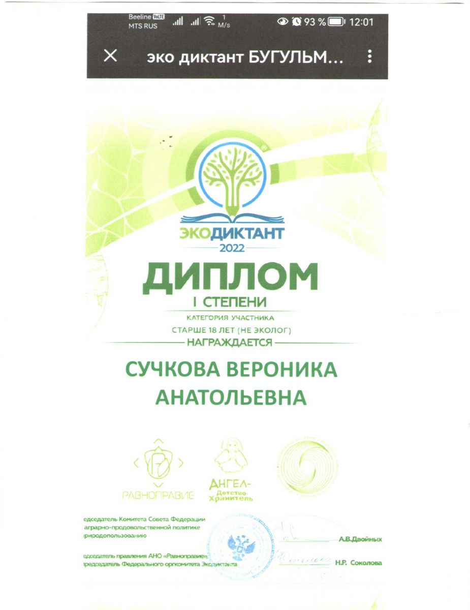 4. Федеральный кокнурс Экодиктант, Диплом 1 степени.Сучкова В.А. Федеральный конкурс Экодиктант.jpg