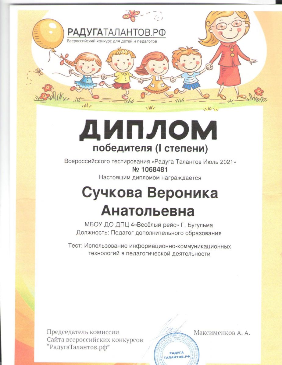 2. Всероссийское тестирование "Использование информационно-коммуникативных технологий в педагогической деятельности" победитель 1 степени диплом