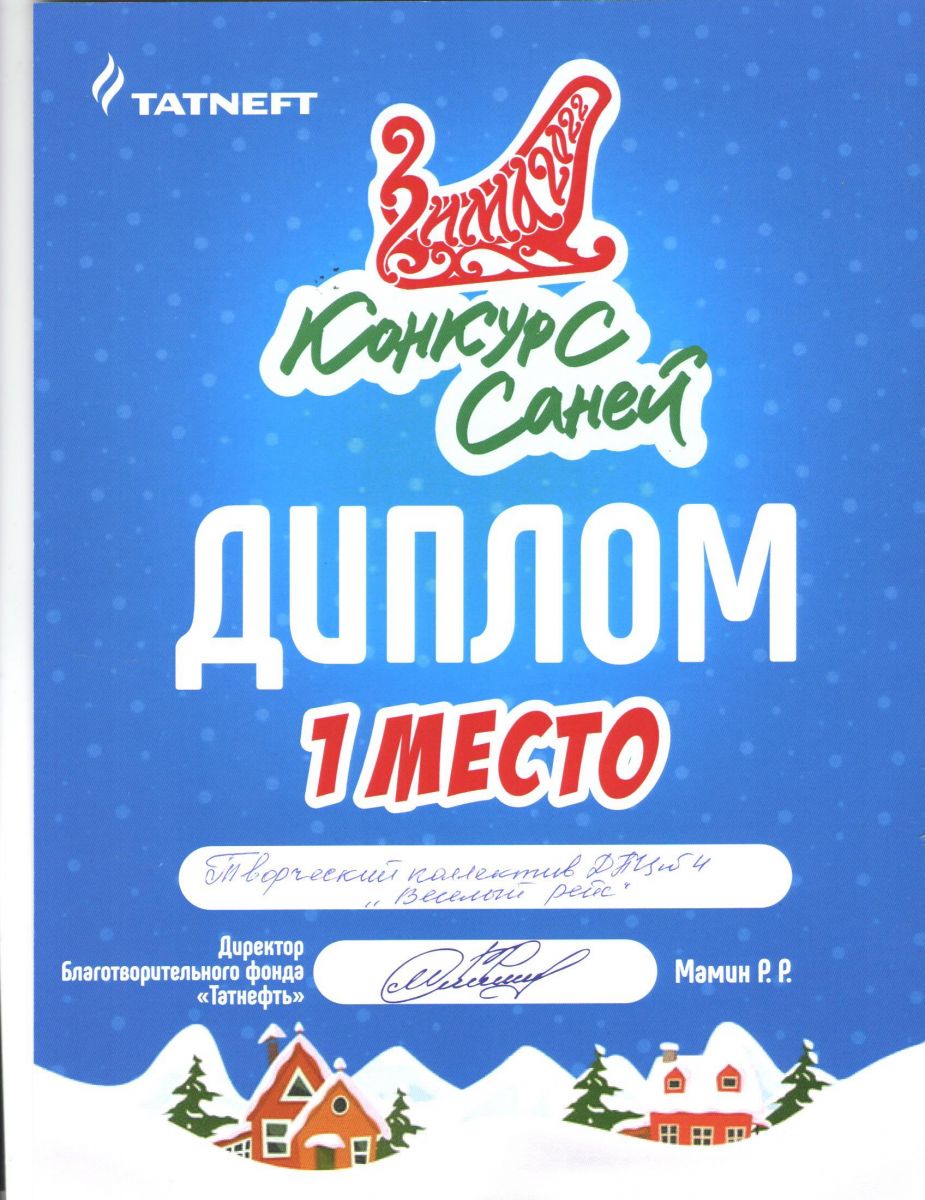 4. Региональный" Конкурс Саней" 1 место Диплом