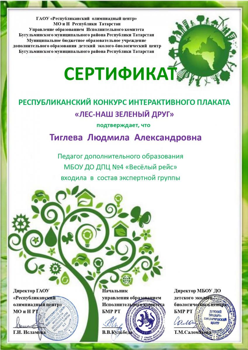 3.Республиканский конкурс интерактивного плаката "Лес наш зеленый друг" Сертификат член жюри (соорганизаторы)