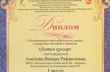 Поздравляем с победой на республиканском конкурсе "Алтын Кулар" педагога дополнительного образования Аметову Венеру Рафаильевну! Так держать!!!