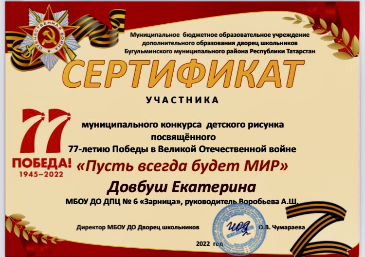 Муниципальное бюджетное образовательное учреждение дополнительного образования детский (подростковый) центр №6 "Зарница" Бугульминского муниципального района Республики Татарстан / Татарстан Республикасы Бөгелмә муниципаль районы бюджет өстәмә белем бирү муниципаль учреждениесе «Зарница» 6нчы балалар (яшүсмерләр) үзәге