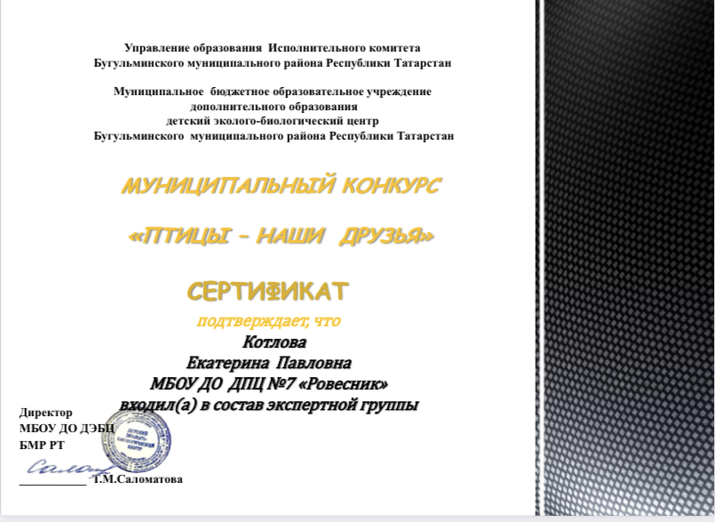 Муниципальный конкурс «Птицы – наши друзья» (член жюри)