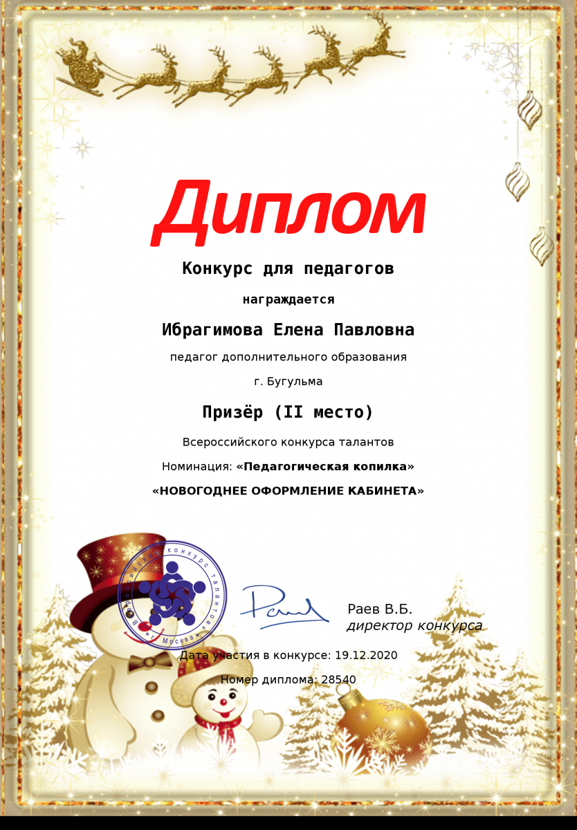 Всероссийский конкурс талантов "Педагогическая копилка" - "Новогоднее оформление кабинета" Диплом II место.png