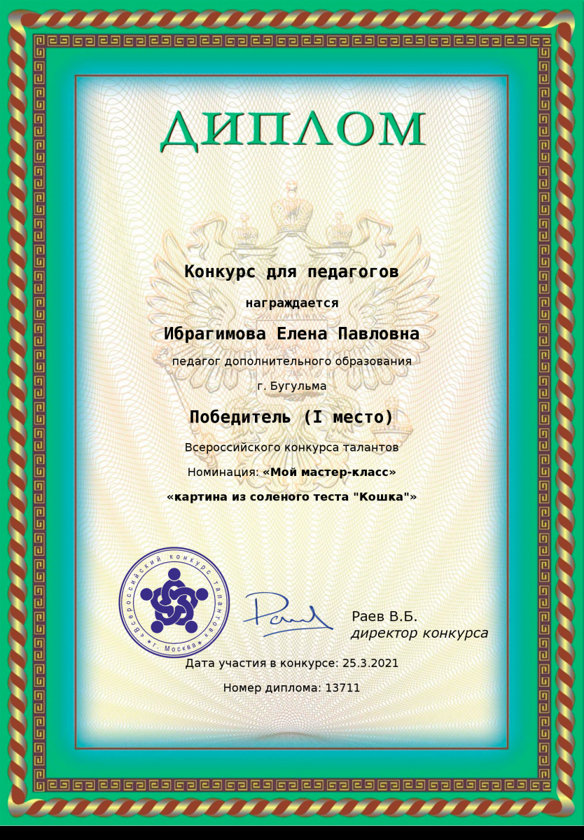 Всероссийский конкурс талантов "Мой мастер класс" Диплом I место.png