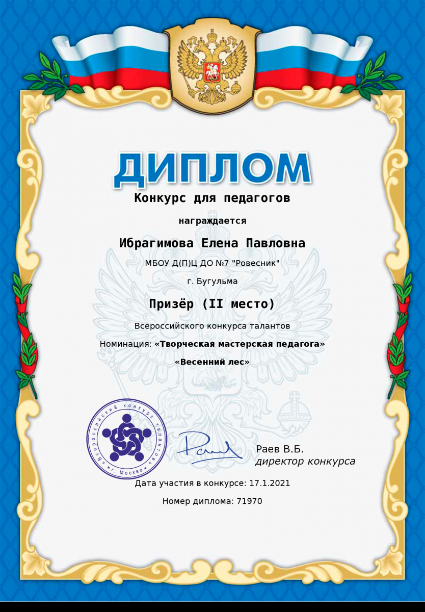 Всероссийский конкурс талантов "Творческая мастерская педагога" - "Весенний лес" Диплом II место .png