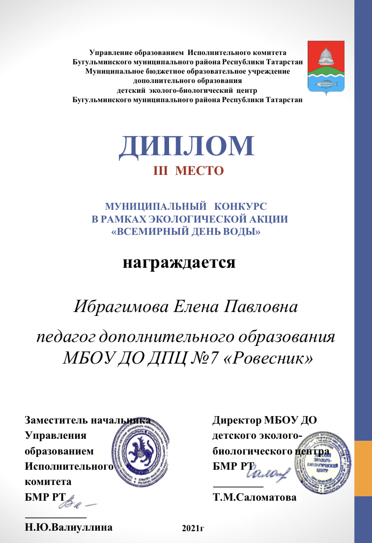 Муниципальный конкурс в рамках экологической акции "Всемирный день воды" Диплом III место.jpeg