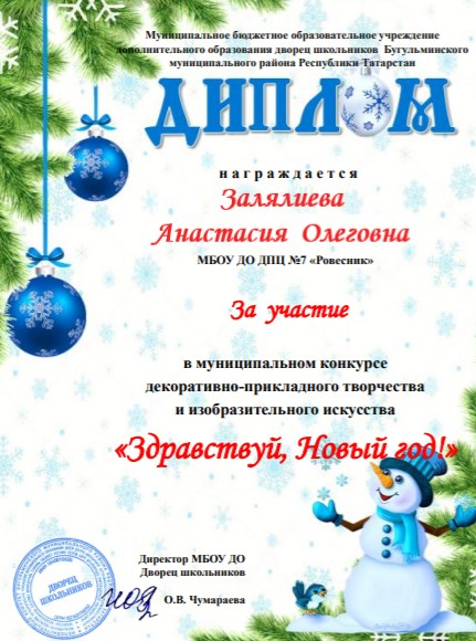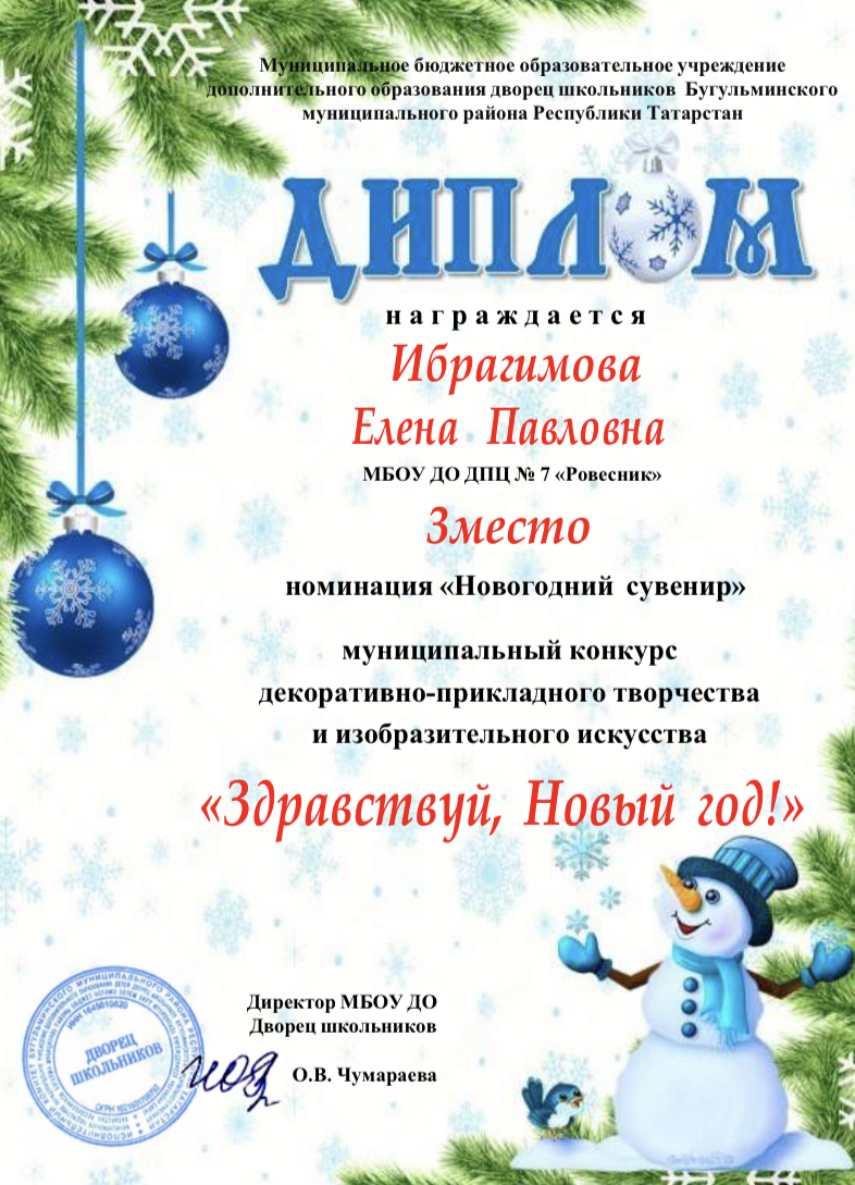 Муниципальный конкурс ДПТ и изобразительного искусства "Здравствуй, Новый год!" Диплом III место.jpeg