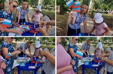 Участие в городском мероприятие в честь праздника "День Российского флага" педагог Морева Н.А. провела мастер -класс: "Флажок"