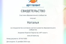 Свидетельство за сотрудничество, активное участие в развитии образовательного сообщества. 21.12.2018