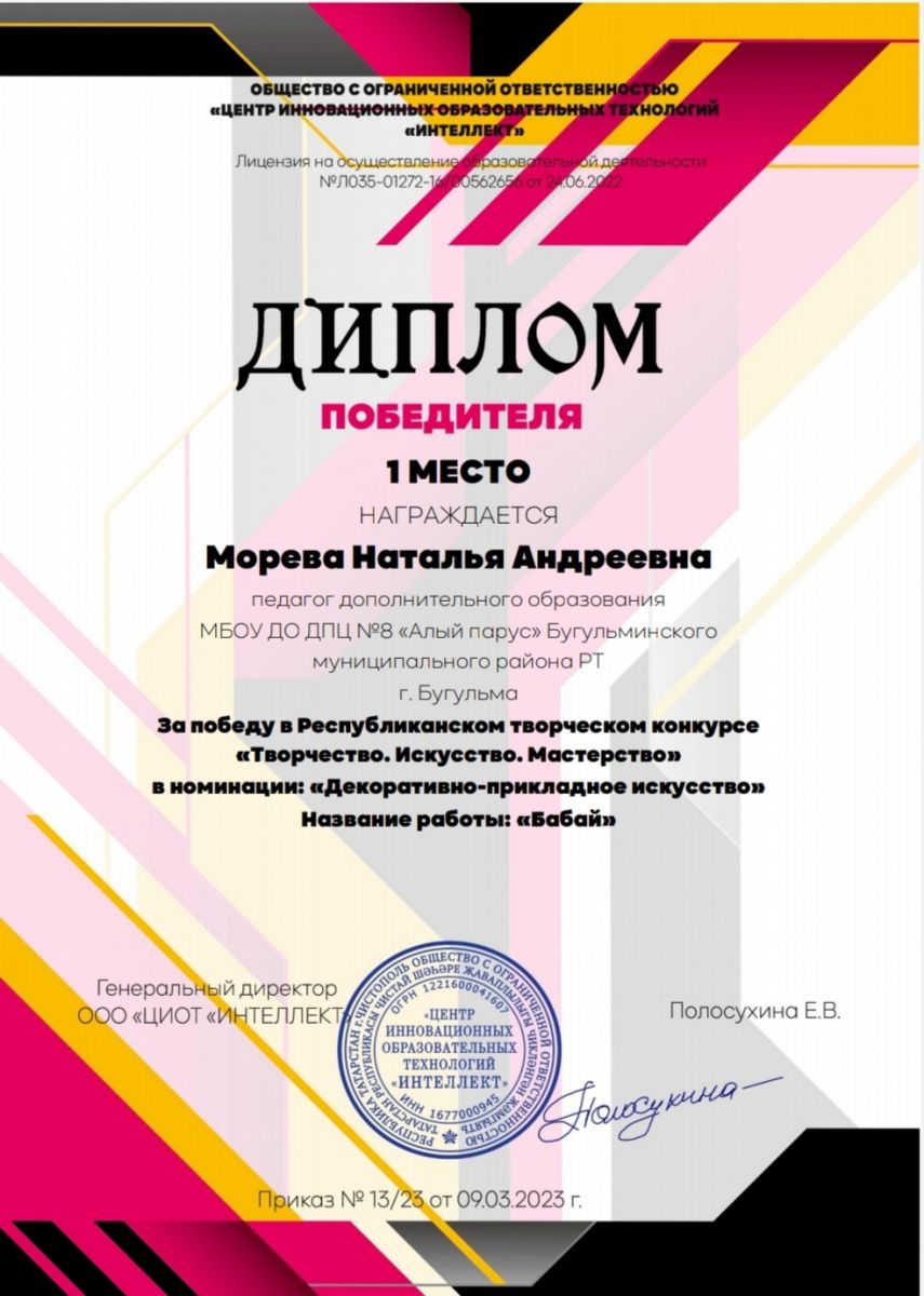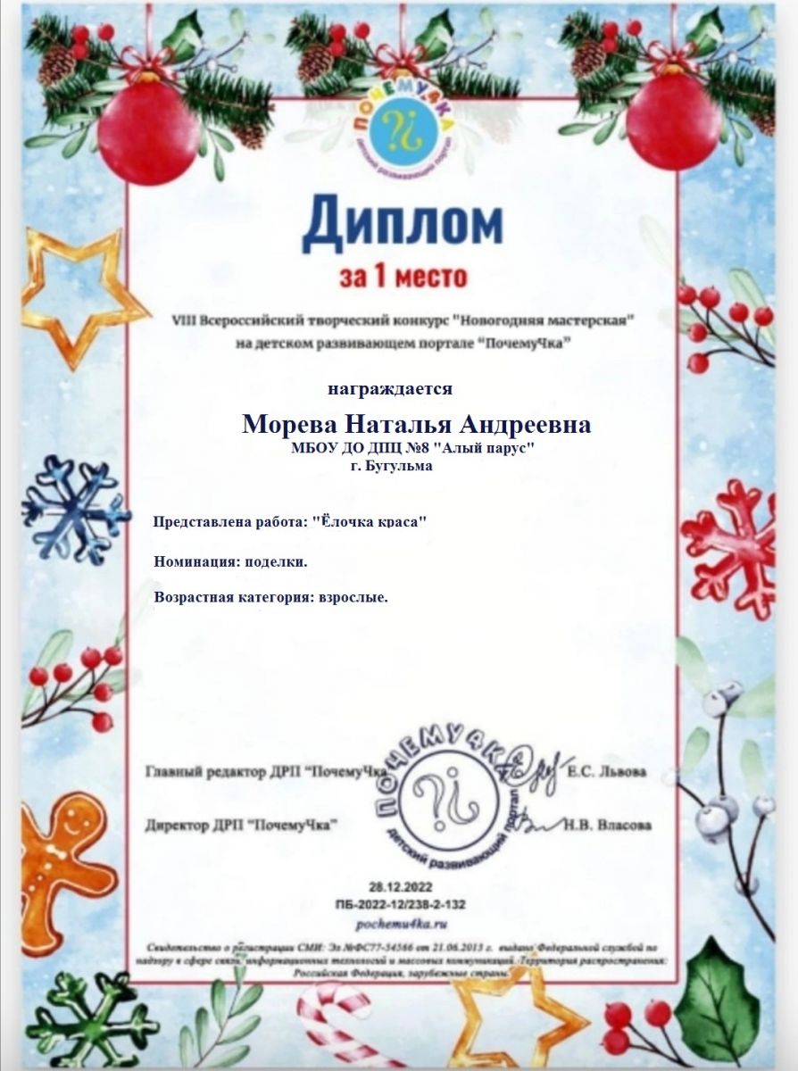 Морева НА диплом 1место Всероссийский