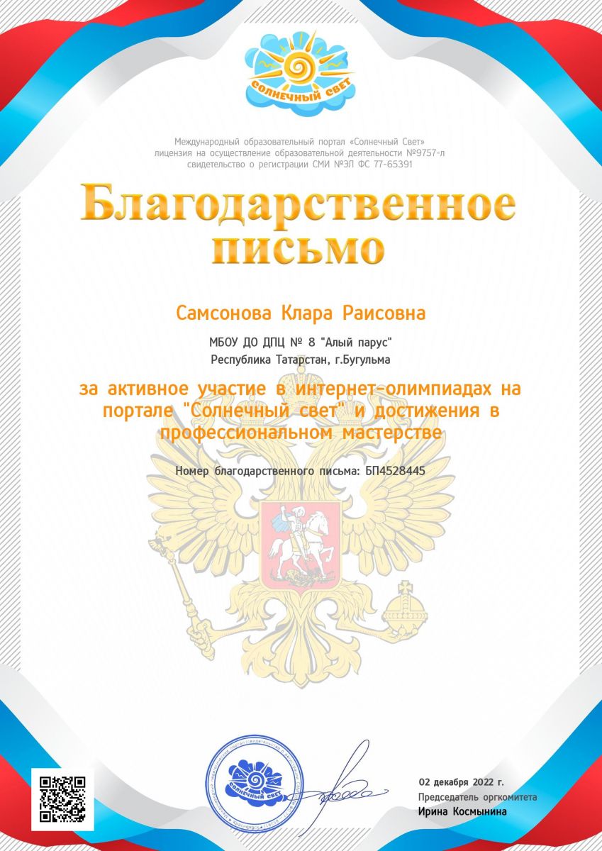 Самсонова К.Р. Благодарственное письмо