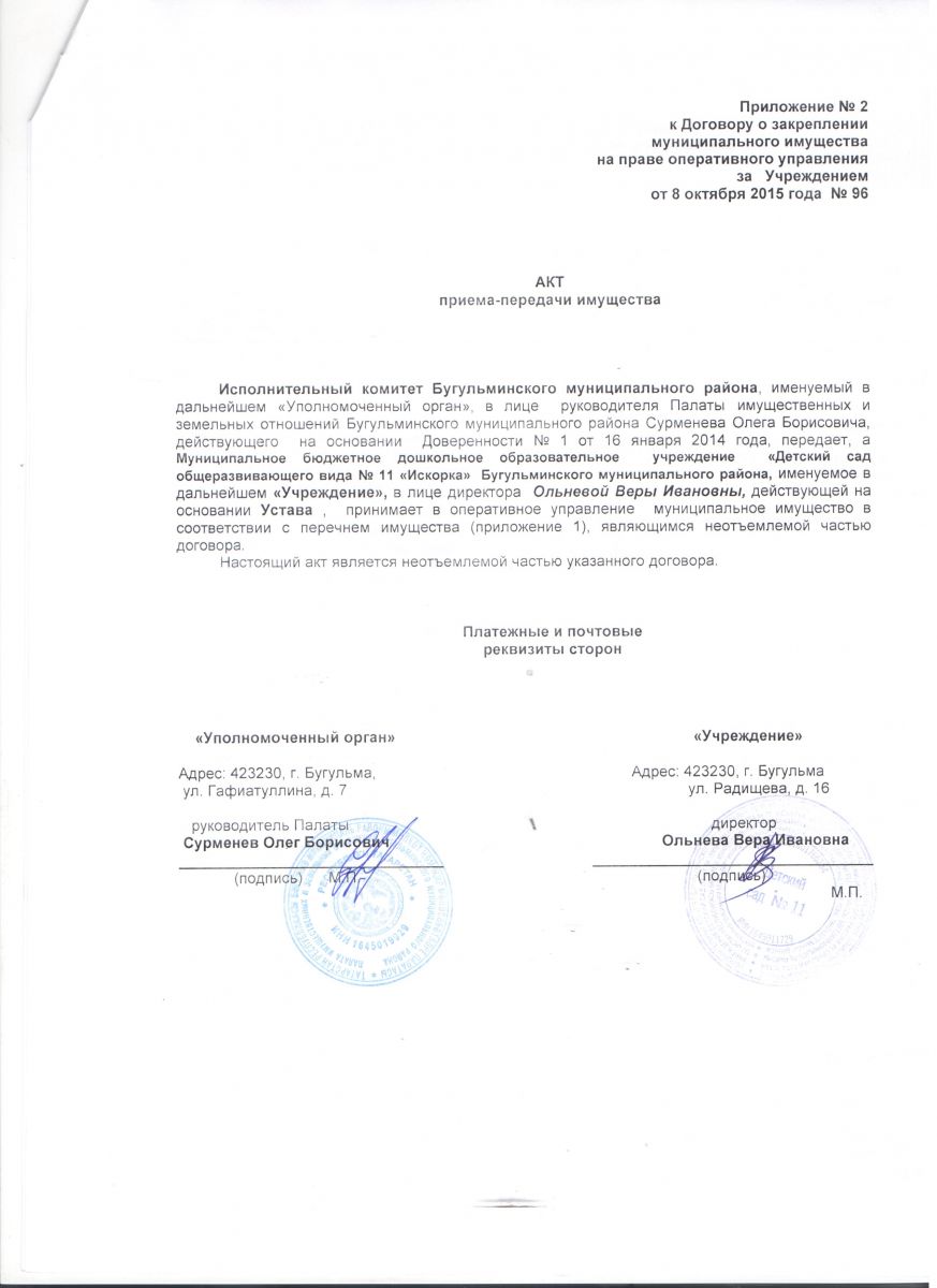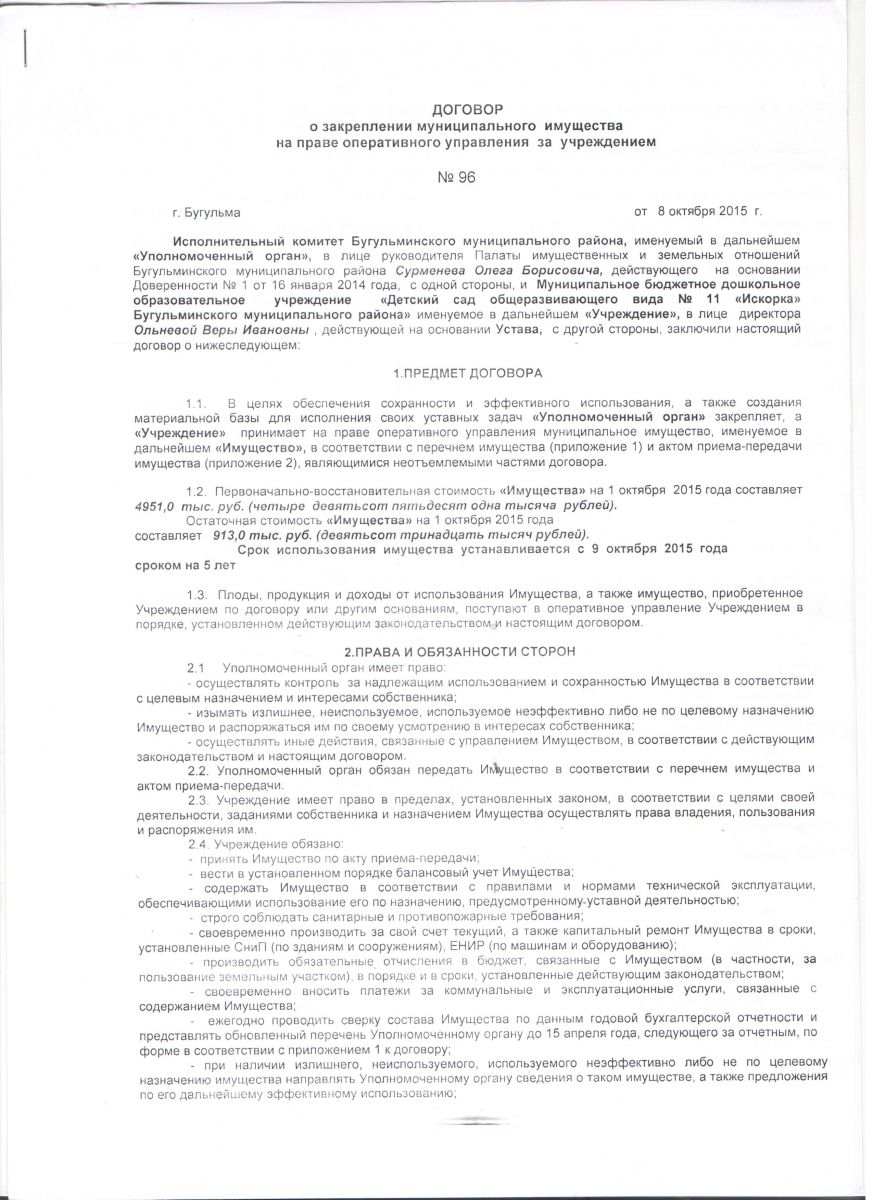 Договор о закреплении имущества на праве операивного управления за учреждением