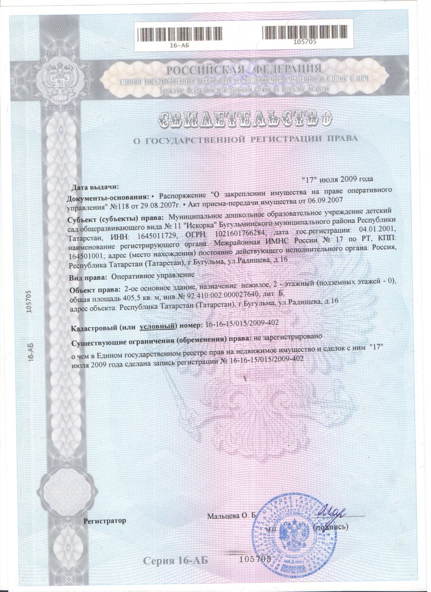 Свидетельство о государственной регистрации права серия 16-АБ № 105705