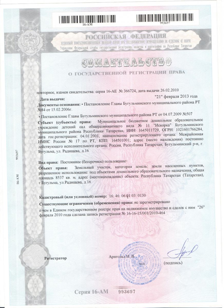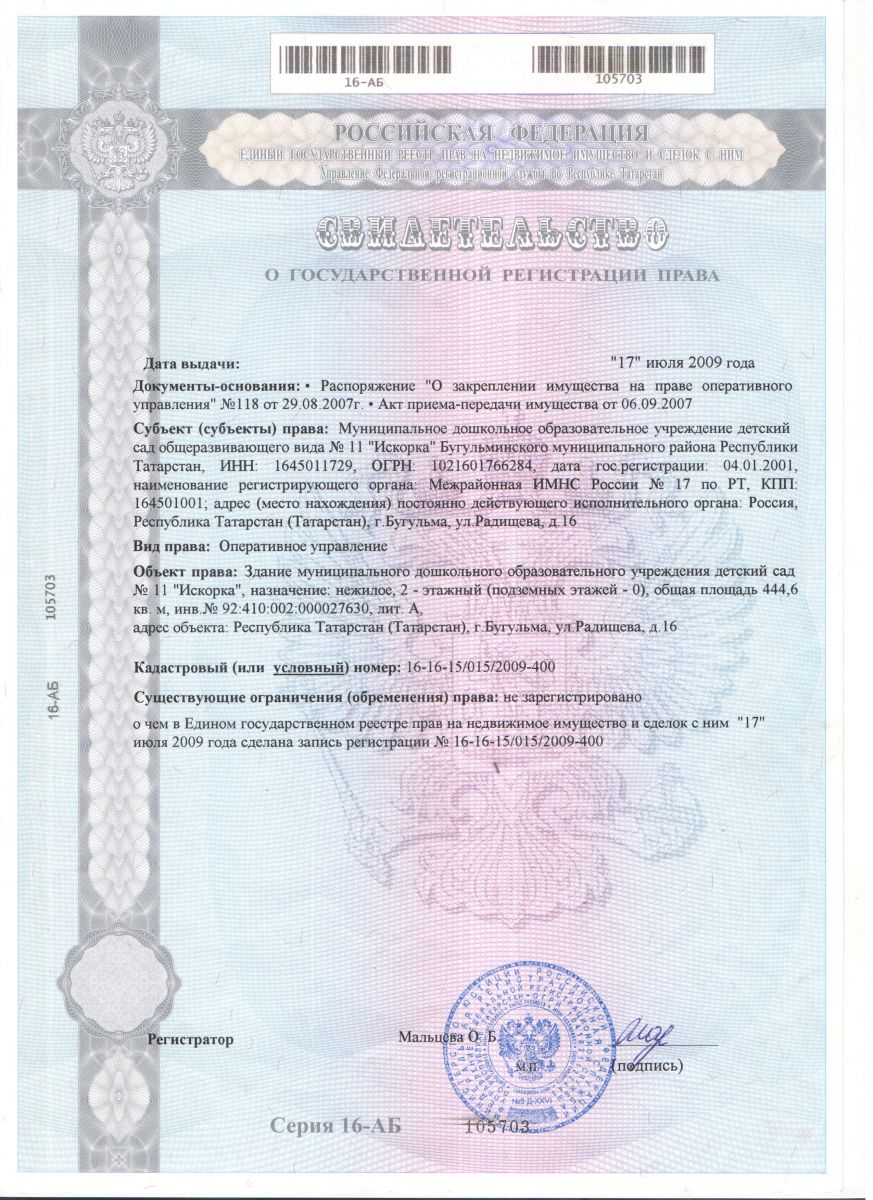 Свидетельство о госдарственной регистрации права серия 16-АБ № 105703