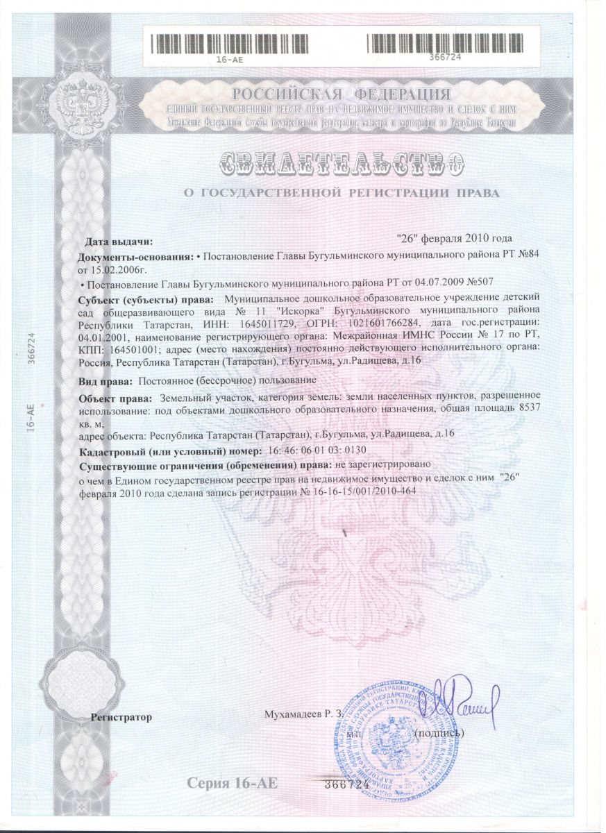 Свидетельство о государственной регистрации права серия 16-АЕ № 366724