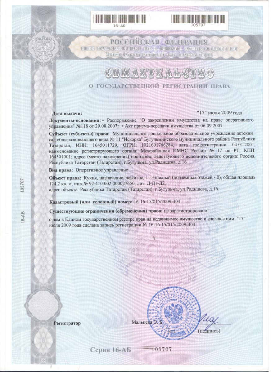 Свидетельство о государственной регистраци права серия 16-АБ № 105707