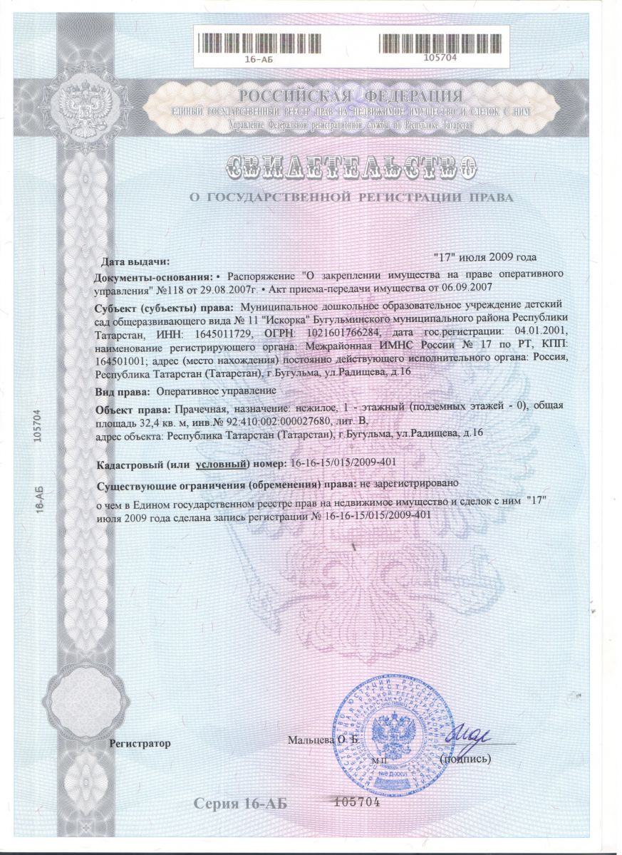 Свидетельство о государственной регистрации права серия 16-АБ № 105704