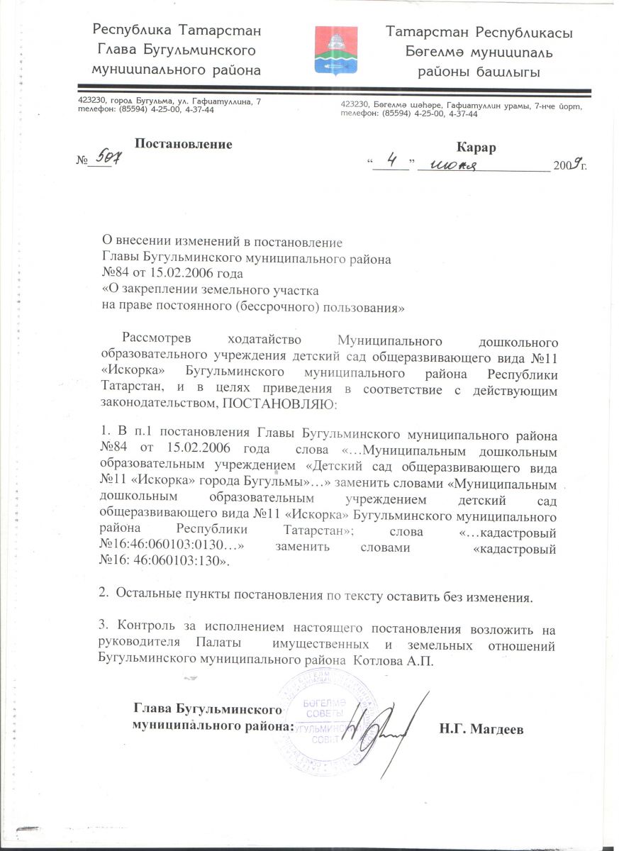 Пстановление о закреплении участка на праве постоянного (бессрочного) пользования