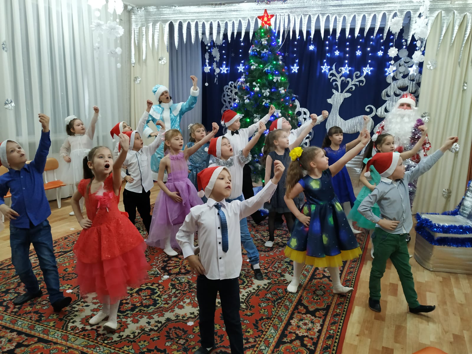 На новогодний карнавал с Дедом Морозом и Снегурочкой собрались ребята подготовительных к школе групп «Почемучки» и «Пчёлки». Вскоре к ним пожаловали и сказочные гости...