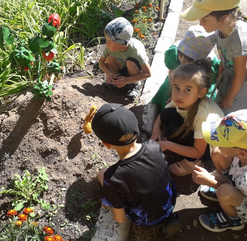 Дети по своей природе — маленькие исследователи, которые с радостью и удивлением открывают окружающий мир. При помощи карты-схемы экологической тропы, проходящей по территории детского сада, дошкольники отправились искать ответы на вопросы: почему пчела кружит над цветком, кому нужны насекомые, они вредные или полезные?