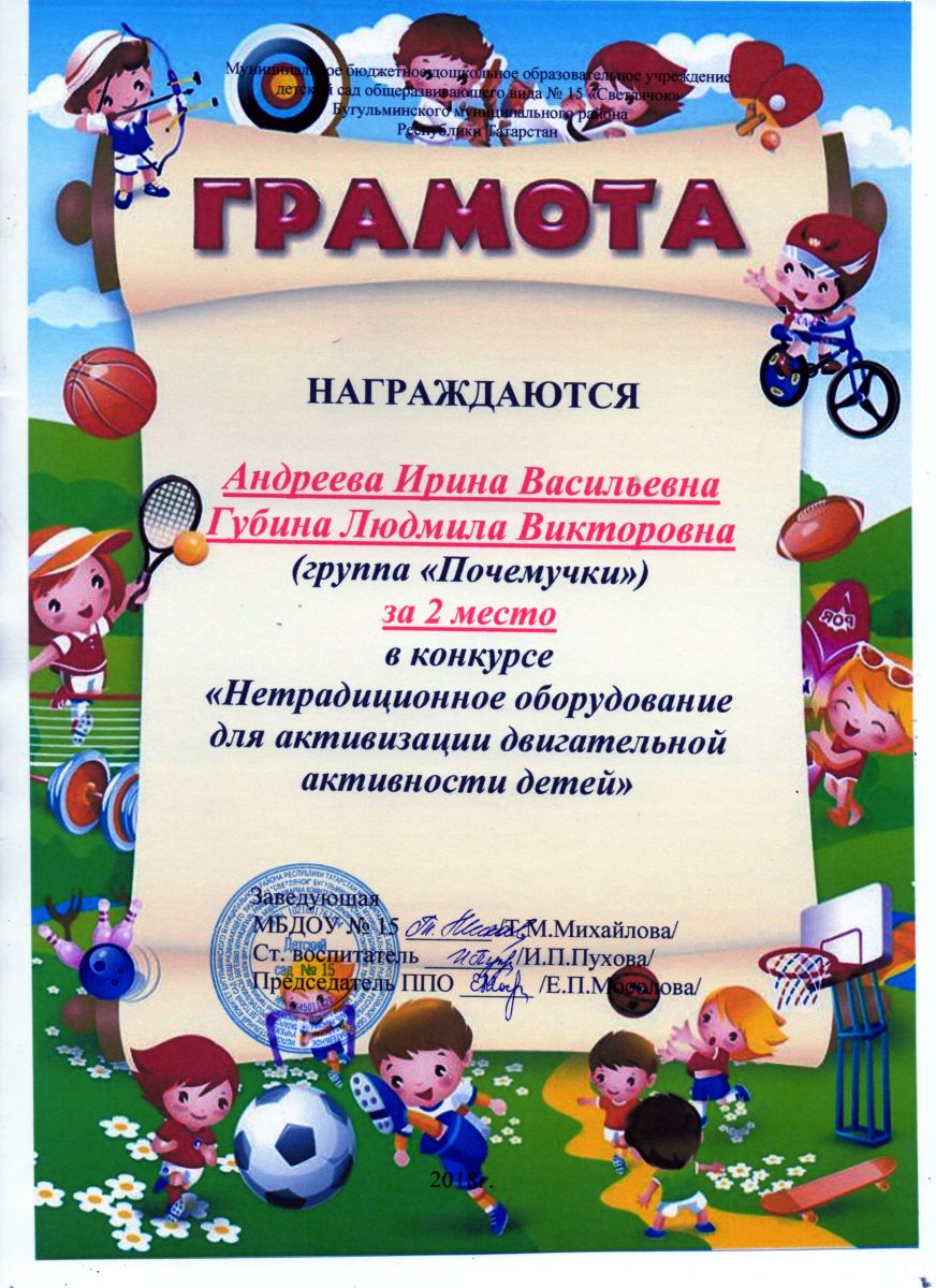 2 место разделили группа «Почемучки» (воспитатели: Губина Л.В., Андреева И.В.) и группа «Неваляшки» (воспитатели: Пузикова А.А., Свежинкина И.А.),