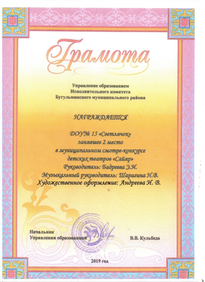Грамота за II место в муниципальном конкурсе "Сайяр-2019"!