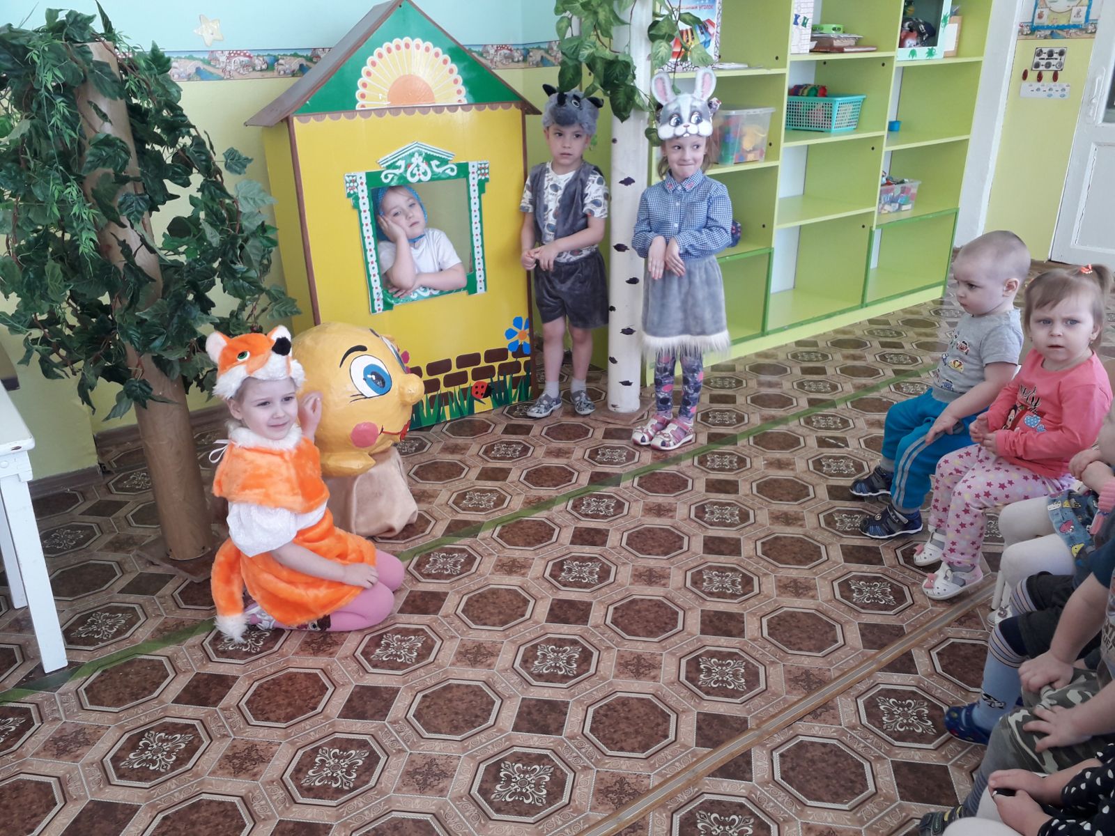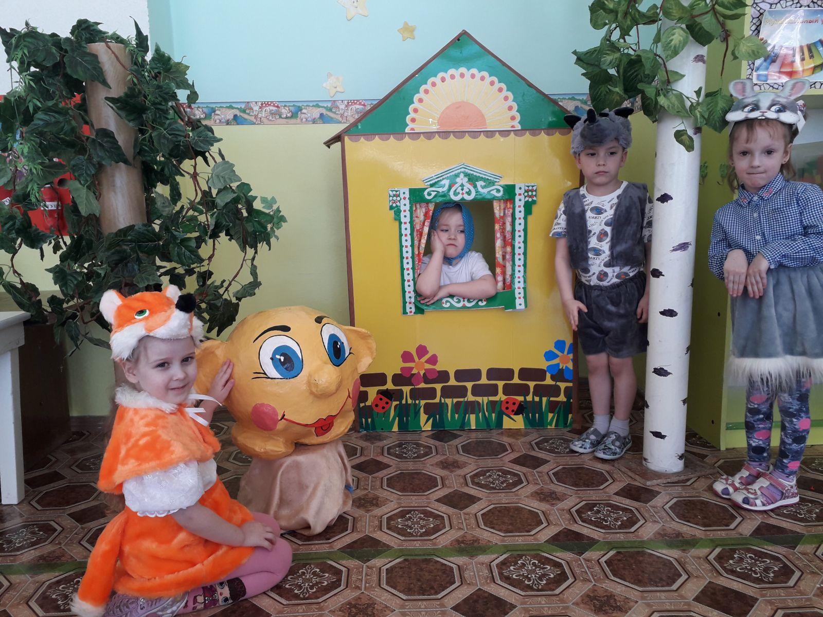 Всем ребятам понравилось быть в роли актёров, они раскрыли свои творческие способности. Наши юные артисты средней группы «Звёздочки» (воспитатель Ильина С.А.) показали сказку «Колобок» для малышей.