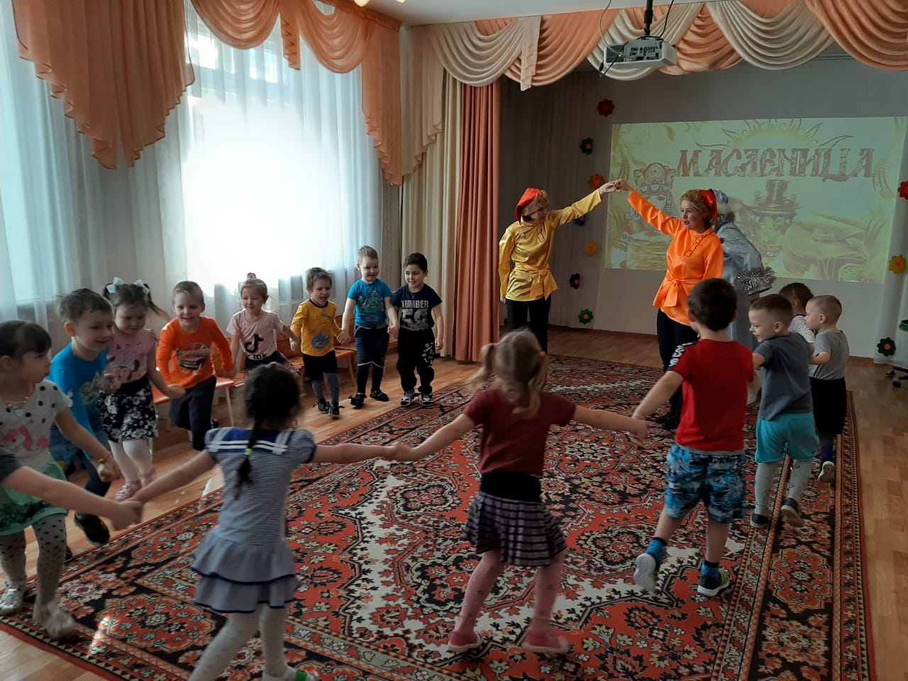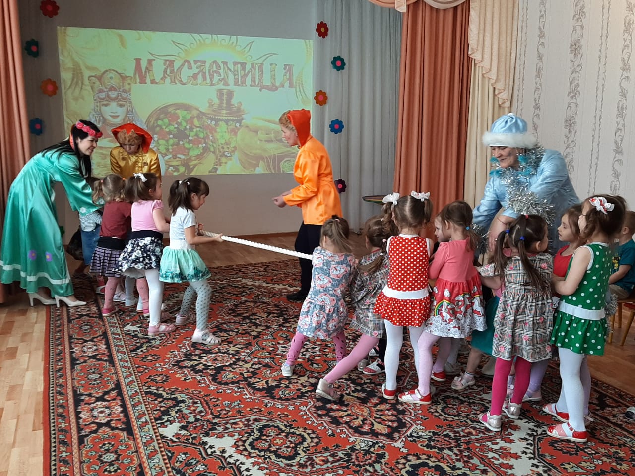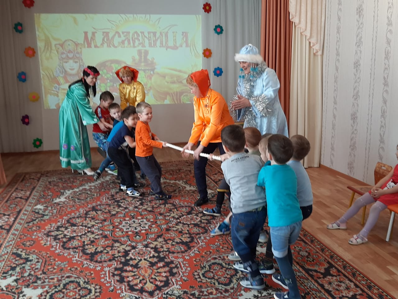 Всю неделю ребята ждали с нетерпением этого праздника. Весёлые скоморохи (Губина Л.В. и Ефимова Е.Х.) играли с детьми в народные, подвижные игры, водили хороводы, соревновались в эстафетах. Традиционно на празднике мы провожали Зиму (Мосолова Е.П.) и встречали Весну (Александрова И.А.).