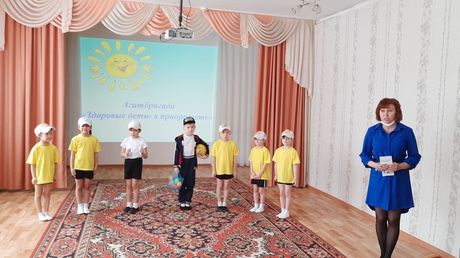 Воспитанники старшей группы «Звёздочки» (педагоги: Ильина С.А., Тихонова К.Б.) представили вниманию всех присутствующих агитбригаду «Здоровые дети – в приоритете!»