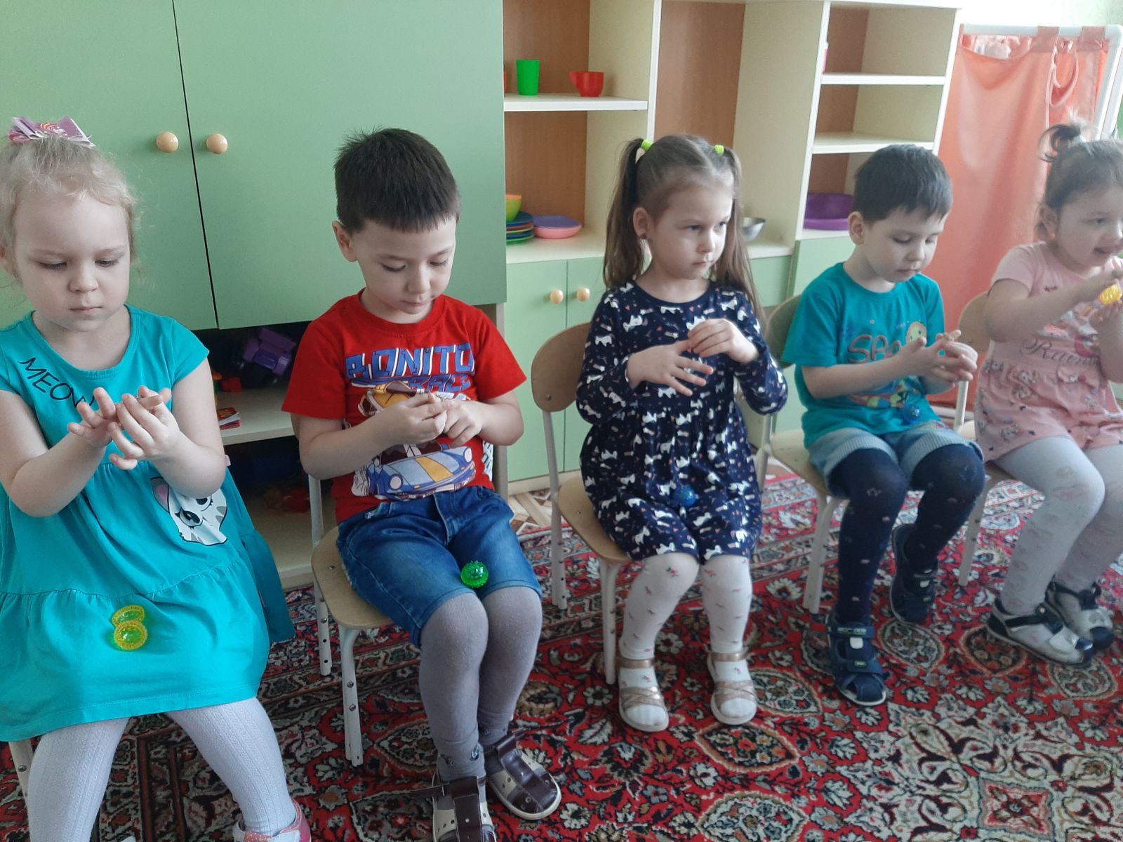 С помощью шарика Су-Джок массажировали кисти и пальчики рук.