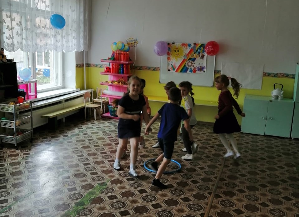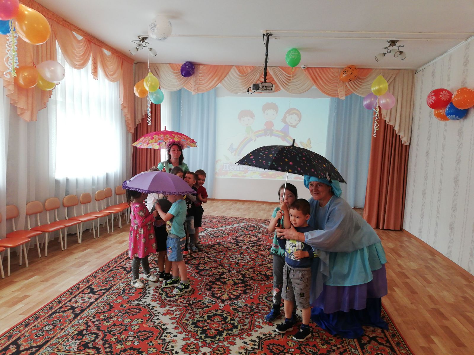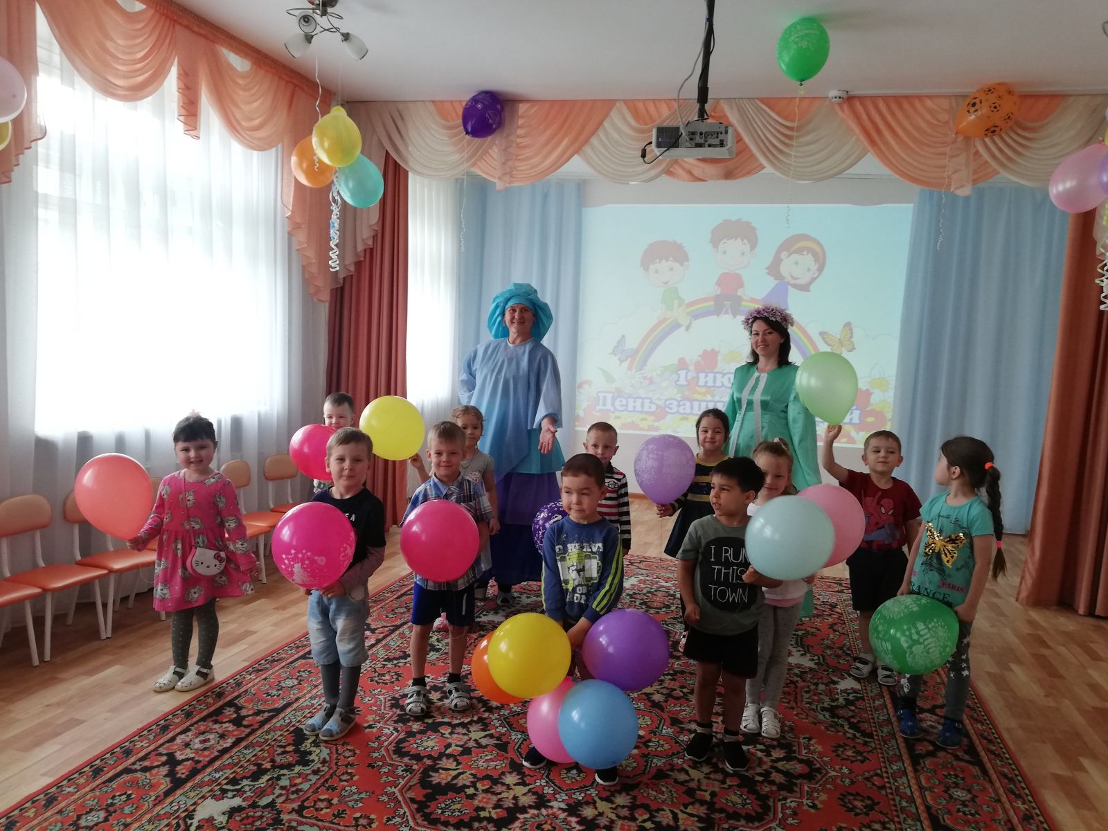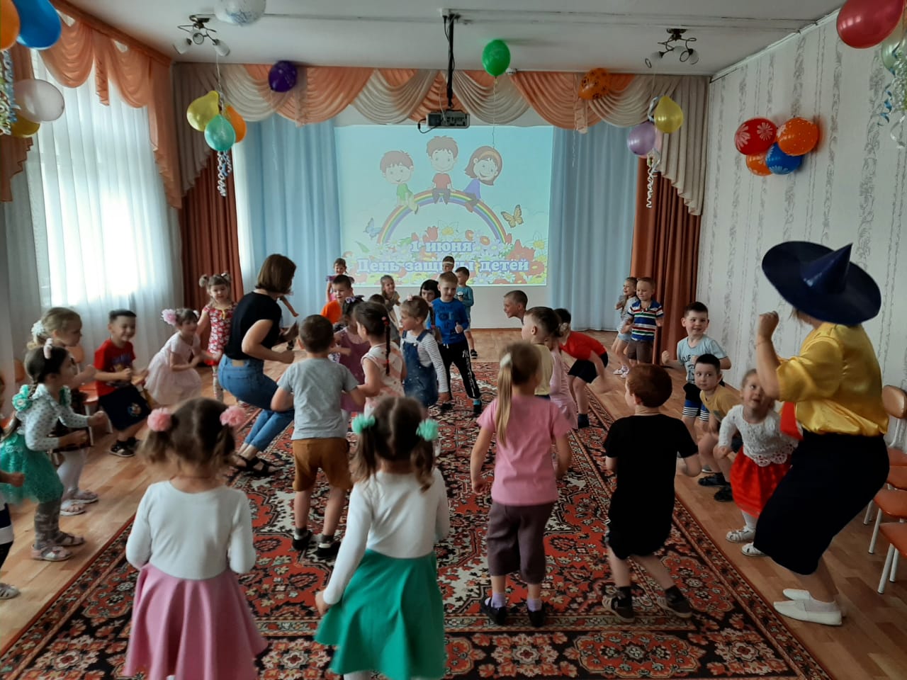 А далее, как и полагается, был праздник детства. К ребятам приходила Весёлая Тучка (воспитатель Мосолова Е.П.), которая принесла хорошее настроение для всех, танцевала и играла вместе с детьми. Дети с удовольствием играли в подвижные игры, танцевали и отгадывали загадки.