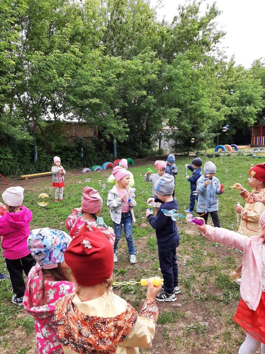 Во второй младшей татарской группе «Ляйсан» (воспитатель Фаттахова Л.С.) прошёл праздник «День защиты детей». Утром всех ребятишек встречала украшенная группа и радостная, звонкая музыка, под которую прошла и весёлая, заводная зарядка.