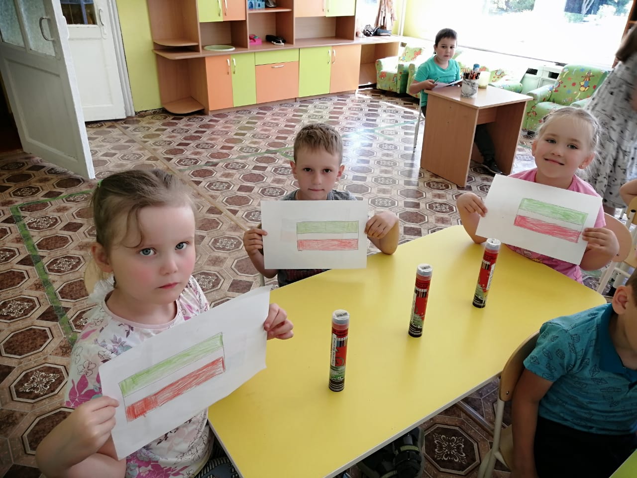 В течение недели велась работа по закреплению знаний о символах России: гербе, флаге, гимне и истории их происхождения. Не обошли стороной и символику нашей Республики Татарстан. Дети с удовольствием раскрасили флаги России и РТ, повторив, что обозначает каждый цвет на флагах.