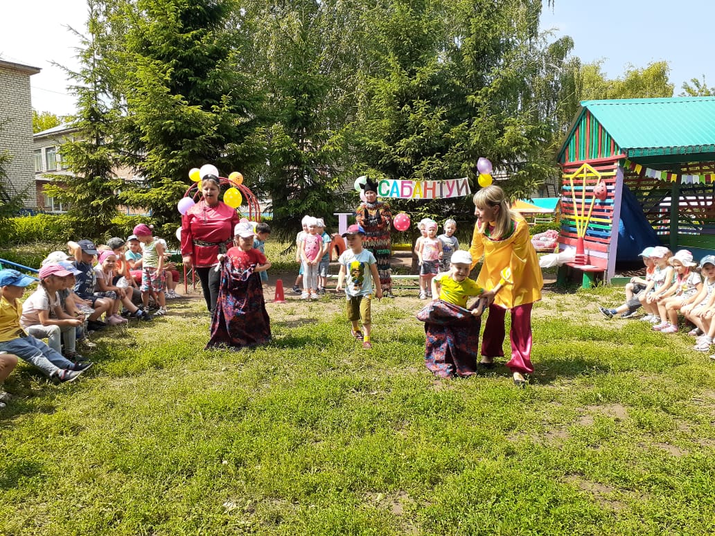 Праздновался Сабантуй весело и зажигательно. Все желающие состязались в быстроте, выносливости и смекалке. Дети принимали участие в народных играх и национальных состязаниях. Дружно перетягивали канат, бегали в мешках, носили воду в пиалах, участвовали в бое с мешками, в импровизированных «скачках на лошадях», соревновались, кто быстрее донесёт яйцо в ложке.