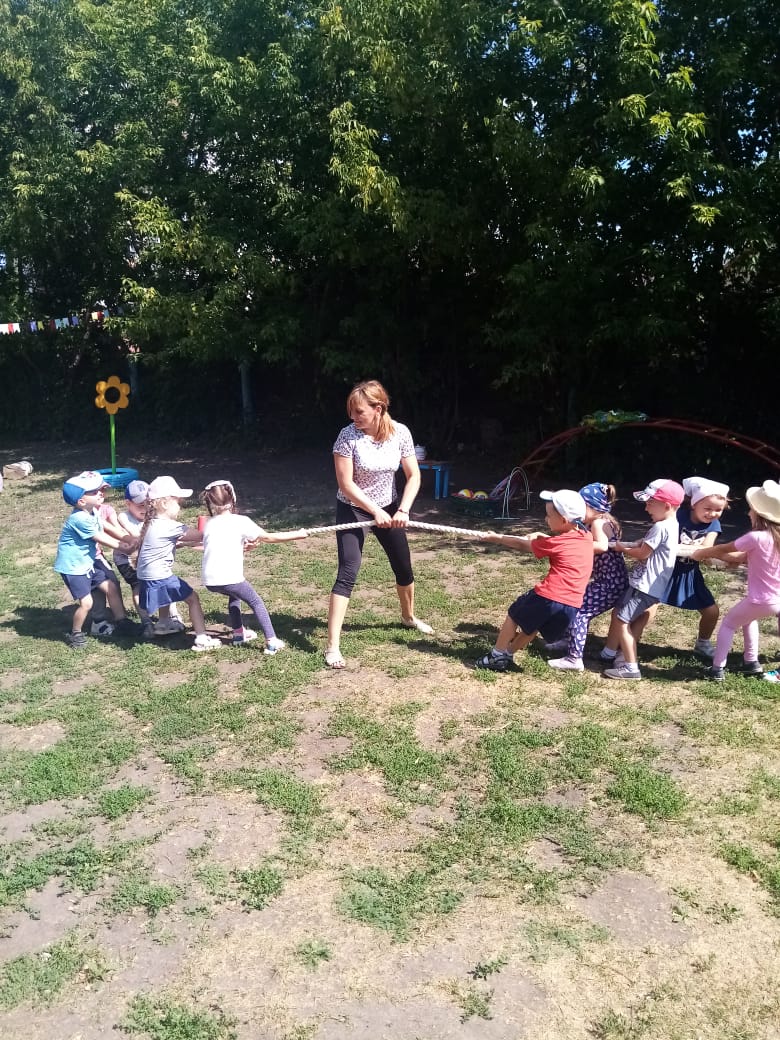 Были организованы сюжетно-ролевые, спортивные игры, «богатырские состязания» с использованием игр-эстафет. Дошкольники пробовали свои силы в перетягивании каната, спортивных состязаниях, да и просто весело и с пользой для здоровья провели время и остались довольны своими олимпийскими приключениями.