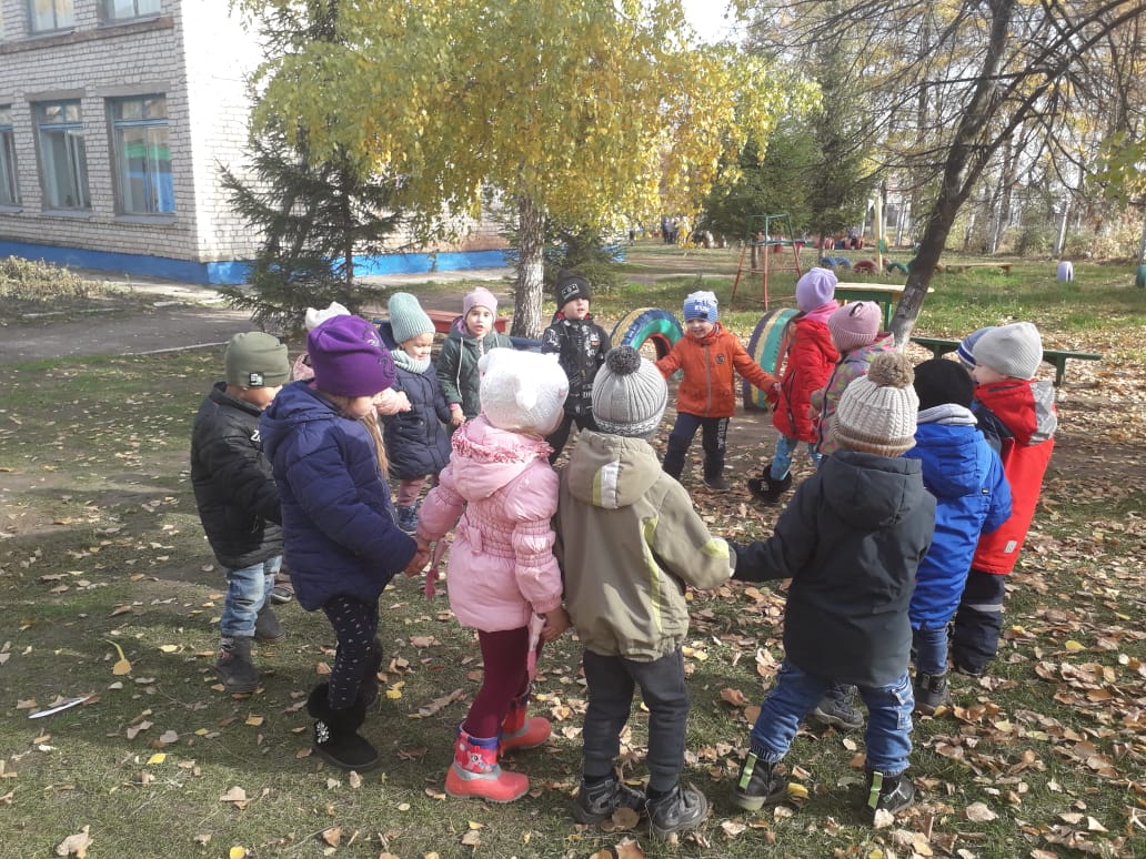 Всю неделю стояла прекрасная погода, и мы с детьми на прогулке рассматривали деревья, играли в игры: «С какого дерева листочек», «1, 2, 3 – к дереву беги». Собирали опавшие листья для поделок. Дети рассказывали стихи, вспомнили песни об осени.