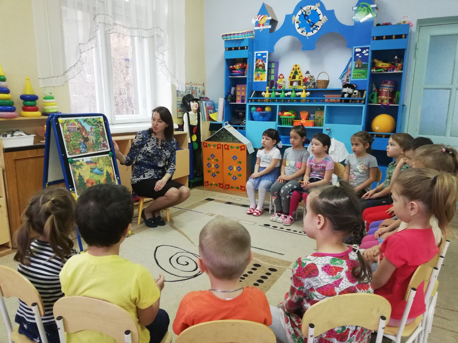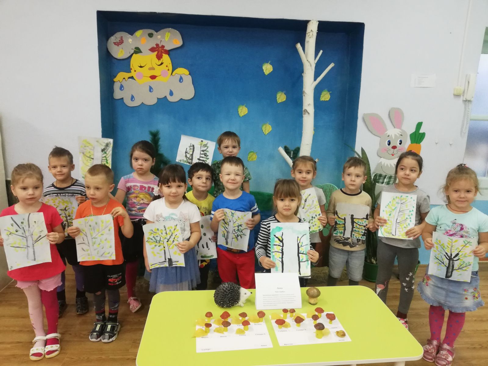 С детьми проводились беседы: «Дары осени», «Что нам осень принесла?», «Осень золотая». Во время беседы обобщили и систематизировали представления о характерных признаках осени. Ребята рассматривали осенние пейзажи, вспоминали народные приметы, знакомились с пословицами, читали сказки «Пых», «Три поросёнка». Учились составлять описательные рассказы о золотой осени, слушали стихи известных поэтов. В режимных моментах проводилась пальчиковая гимнастика: «Капуста», «У оленя дом большой»; подвижные игры «Листочки и ветер», «Солнышко и дождик».
