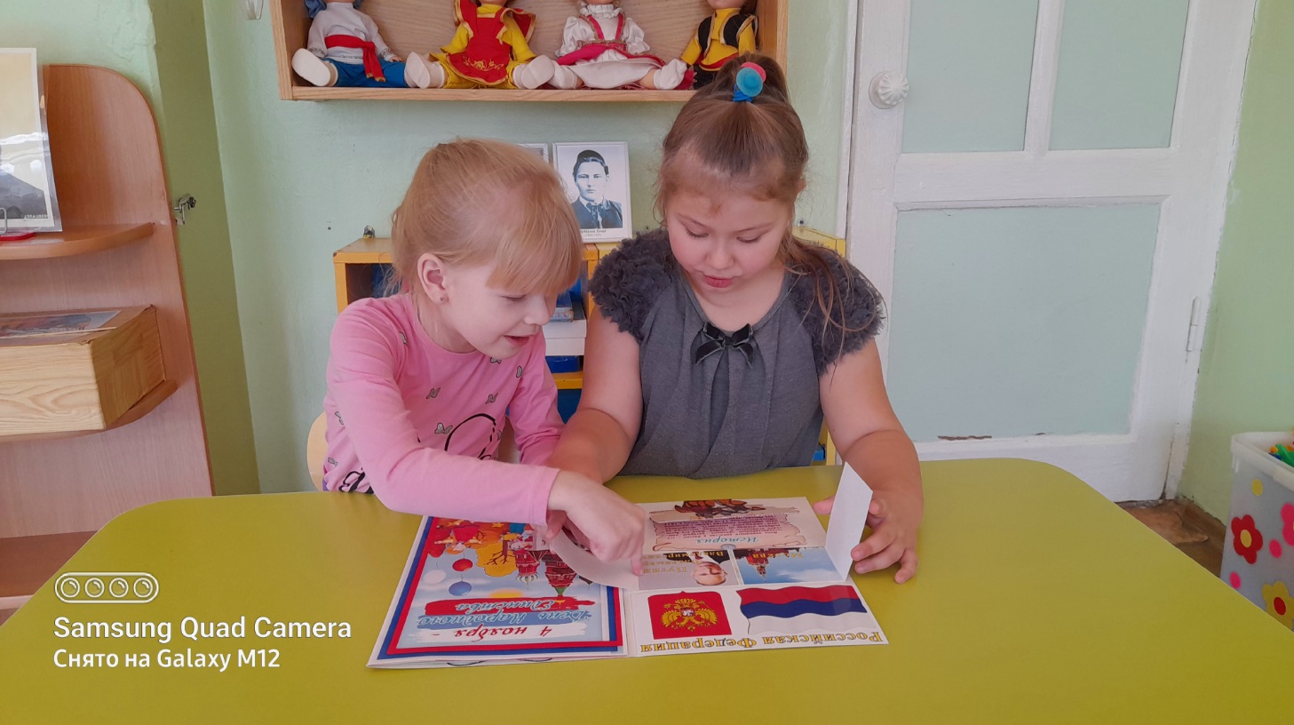 В течение недели мы с воспитанниками беседовали о России, о её символике, рассматривали и изучали карту России, читали художественную литературу, раскрашивали раскраски. Смотрели презентацию «4 ноября — День народного единства». Говорили об истории праздника «День народного единства», «Что означает — народное единство?», «Кто такие Минин и Пожарский?». А также, оформили стенгазету «Хоровод дружбы», поиграли в дидактические игры «Собери матрёшку», «Назови герб».