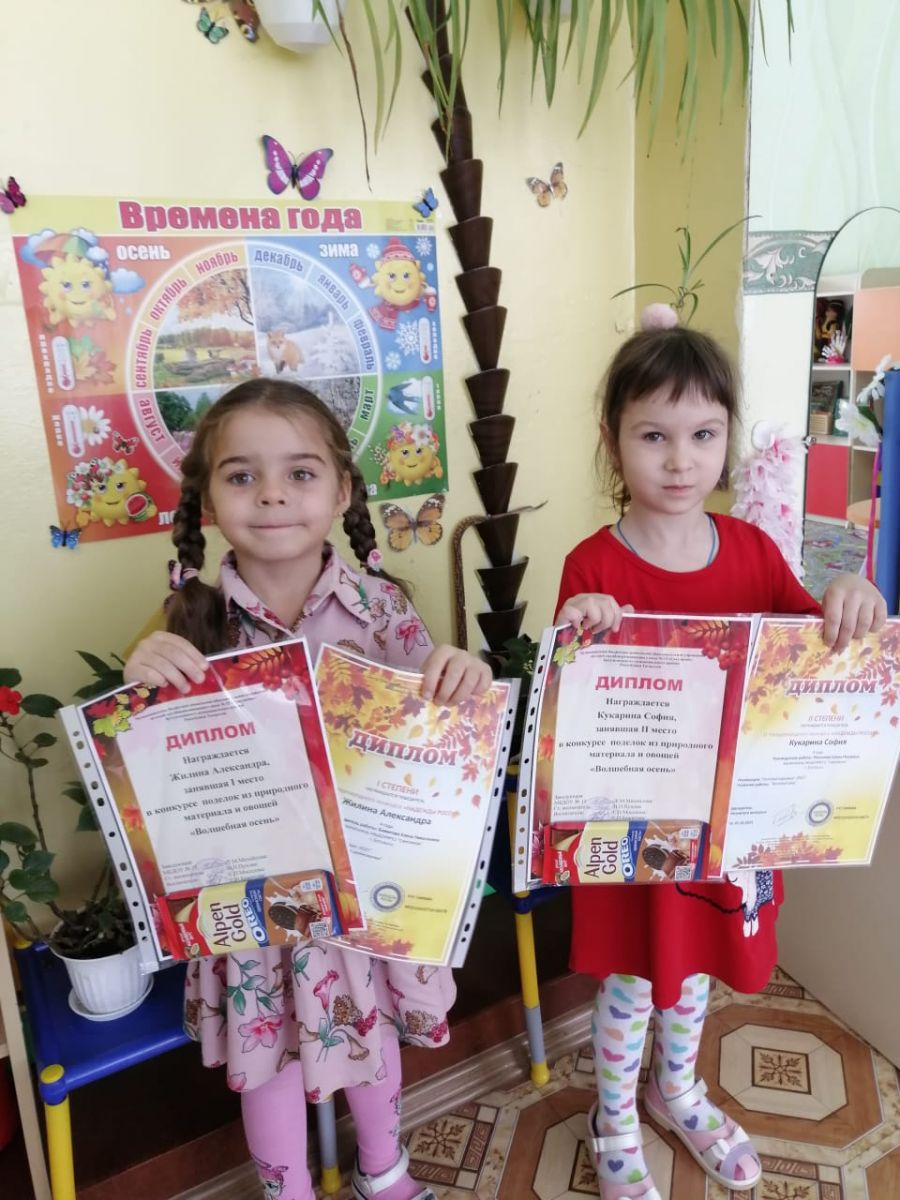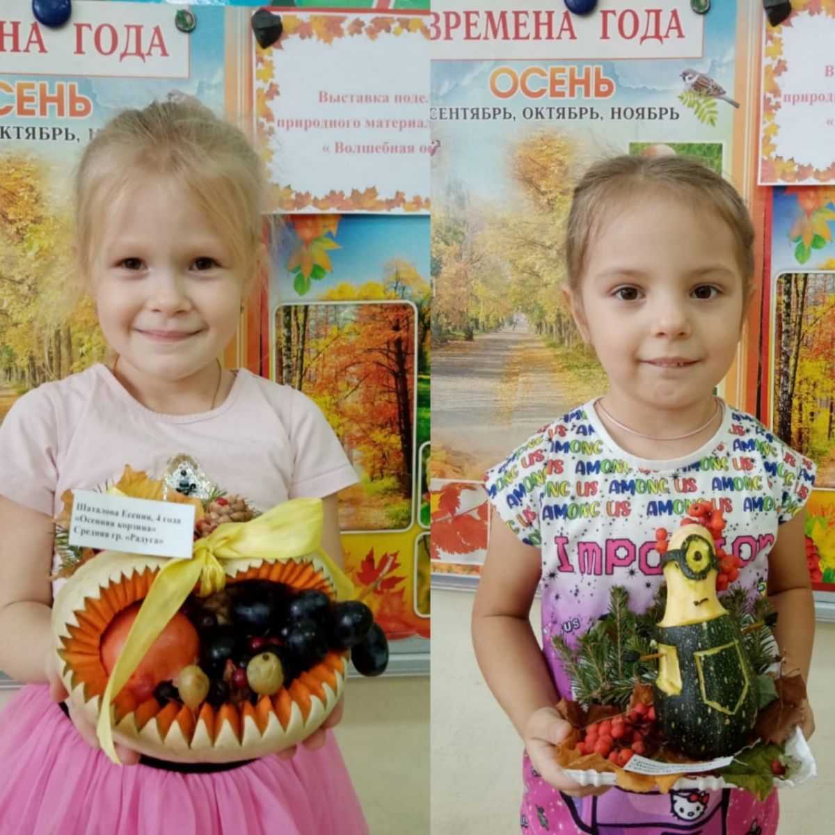 Опубликовано: 16.11.2021В средней группе "Радуга" (воспитатели Бажитова Е. Н. и Мосолова Е. П.) прошёл конкурс поделок из природного материала и овощей "Волшебная осень".