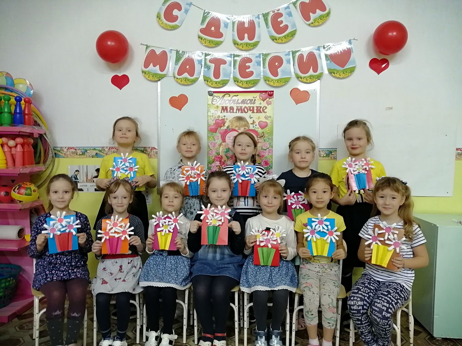 В подготовительной группе "Звёздочки" прошла неделя, посвящённая празднику "День матери". Дети совместно с воспитателями приготовили поздравление своим любимым мамам (смотрите здесь!)