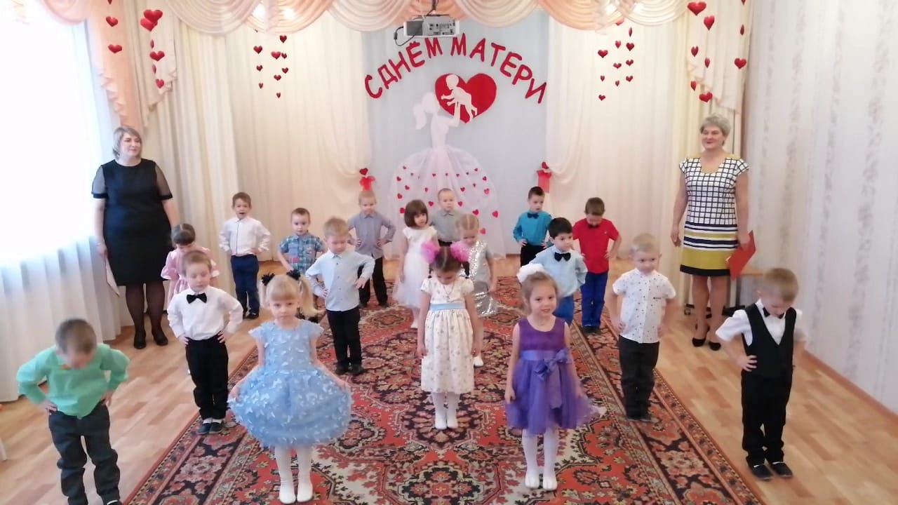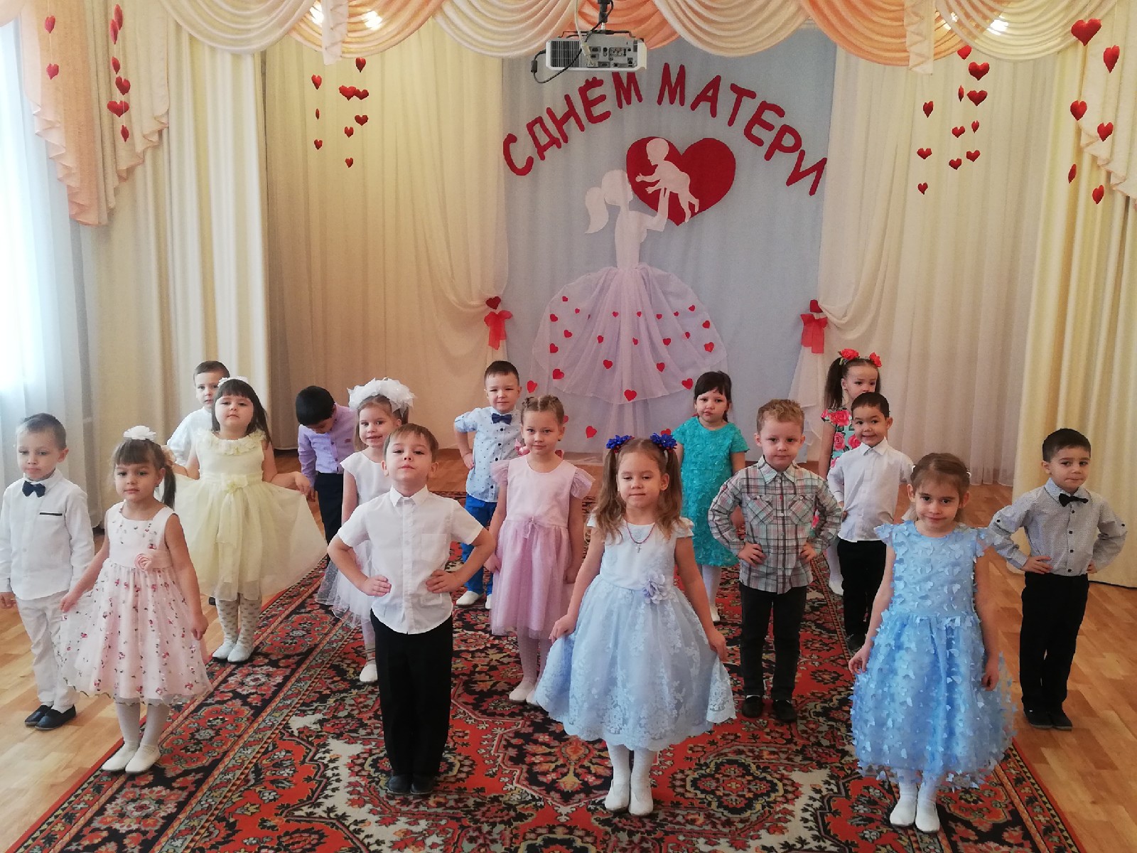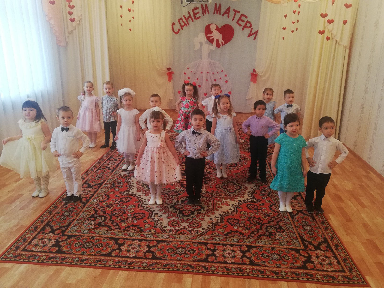 Дети средних групп «Ляйсан» (воспитатели Ганеева З.Г., Фаттахова Л.С.) и "Радуга" (воспитатели Бажитова Е.Н. и Мосолова Е.П.) и музыкальный руководитель (Шарагина Наталья Владимировна) подготовили для мам праздничный концерт в режиме онлайн, который прошёл накануне праздника.